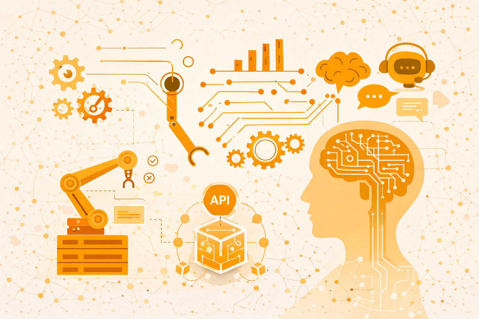 Intégration avancée de modèles IA (LLM) et d’API tierces pour connecter vos outils, enrichir vos données et créer des solutions sur mesure.